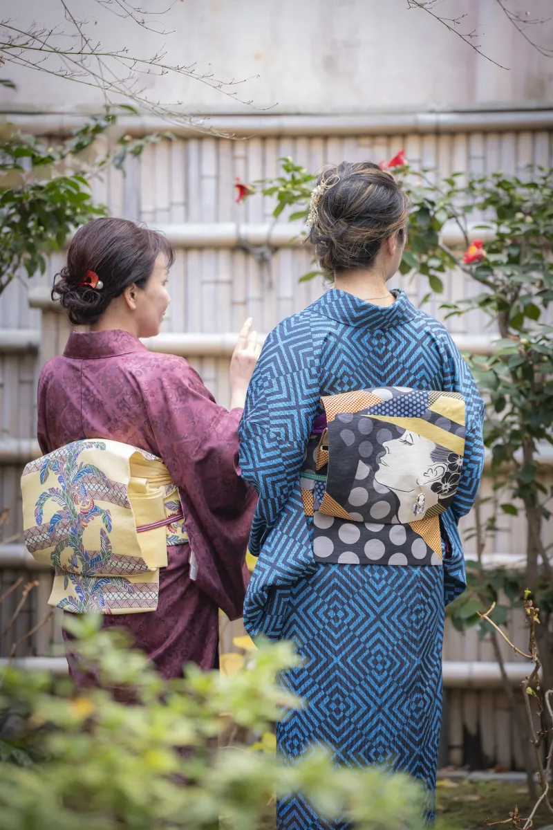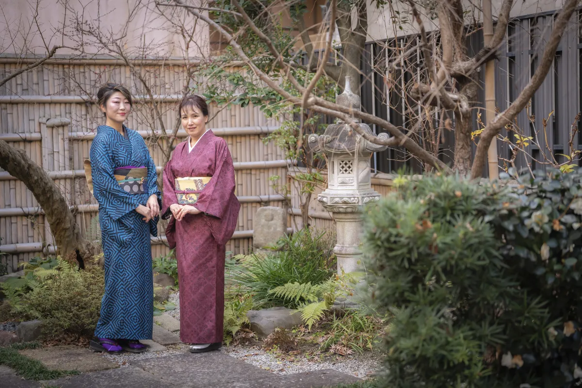 烏丸御池校(本校)には四季折々の花が楽しめるお庭もあり、お稽古後に着物で自由に写真撮影も楽しんでいただけます。