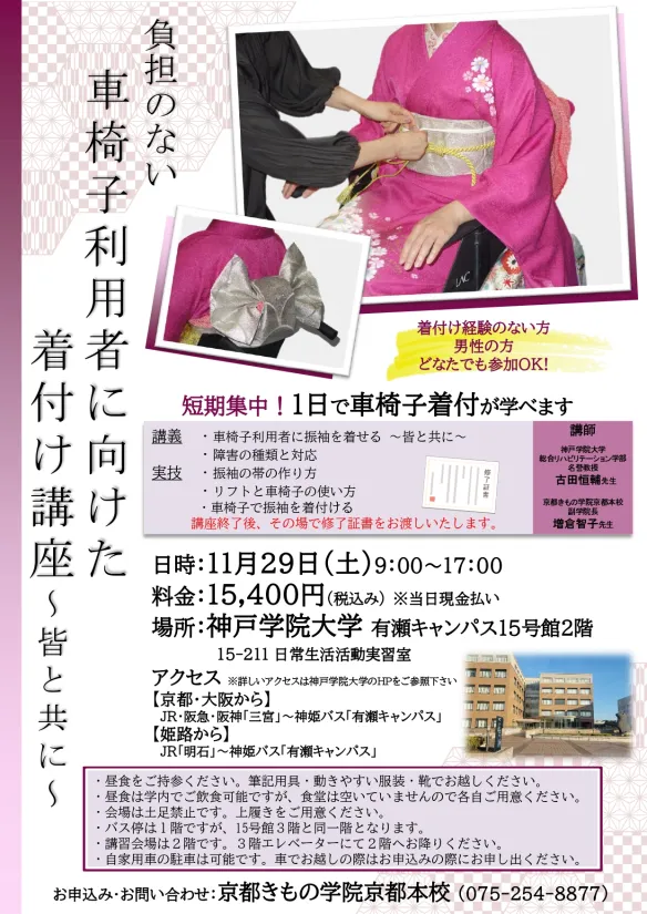 【1日集中!車椅子着付け講座】11/29 神戸にて「車椅子着付講座」を開催致します!