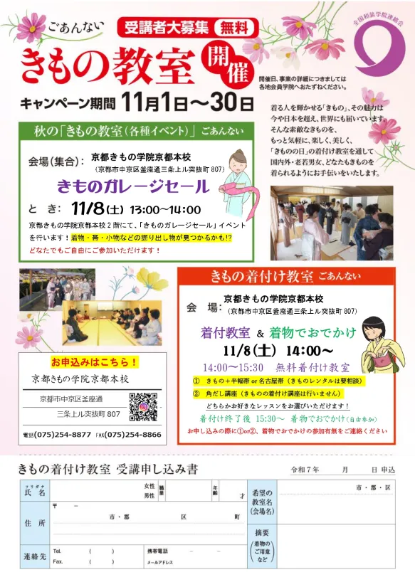 11/8(土)きものガレージセール&無料着付け教室開催!【要予約・どなたでも参加可能】