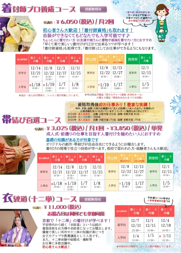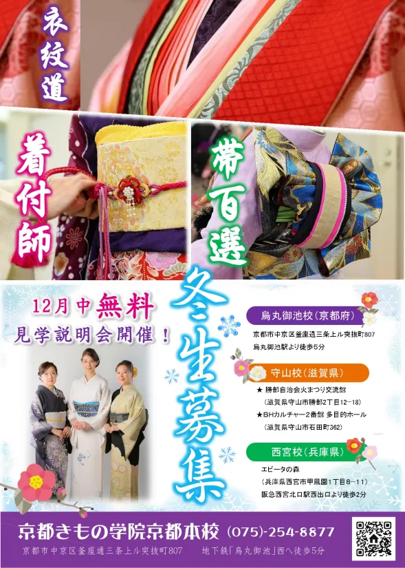2026年1月生募集「着付師・衣紋道(十二単)・帯百選」12月中無料見学説明会開催!